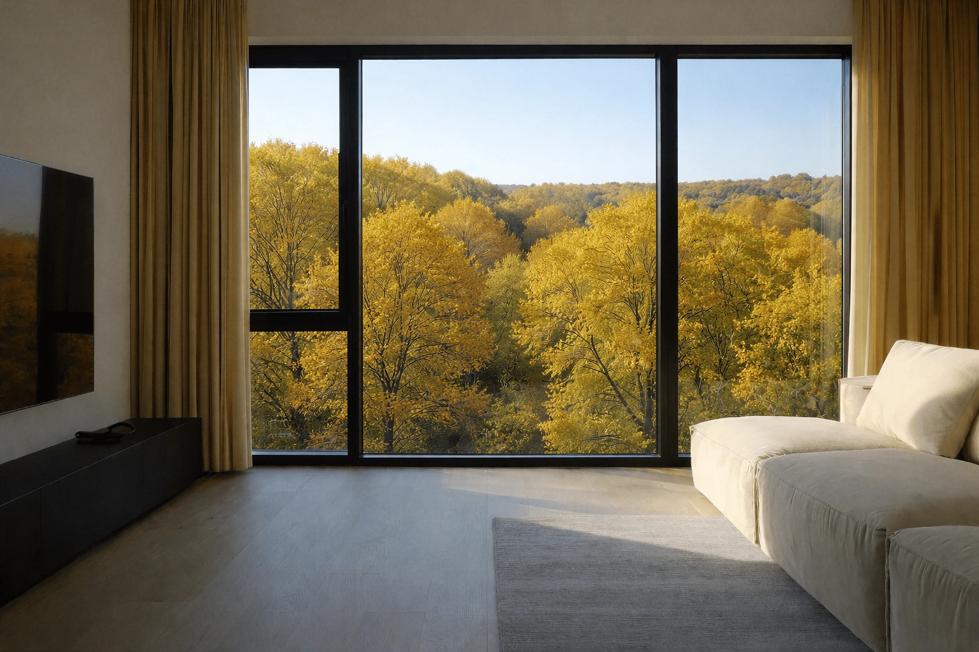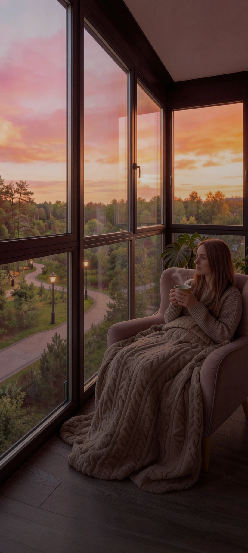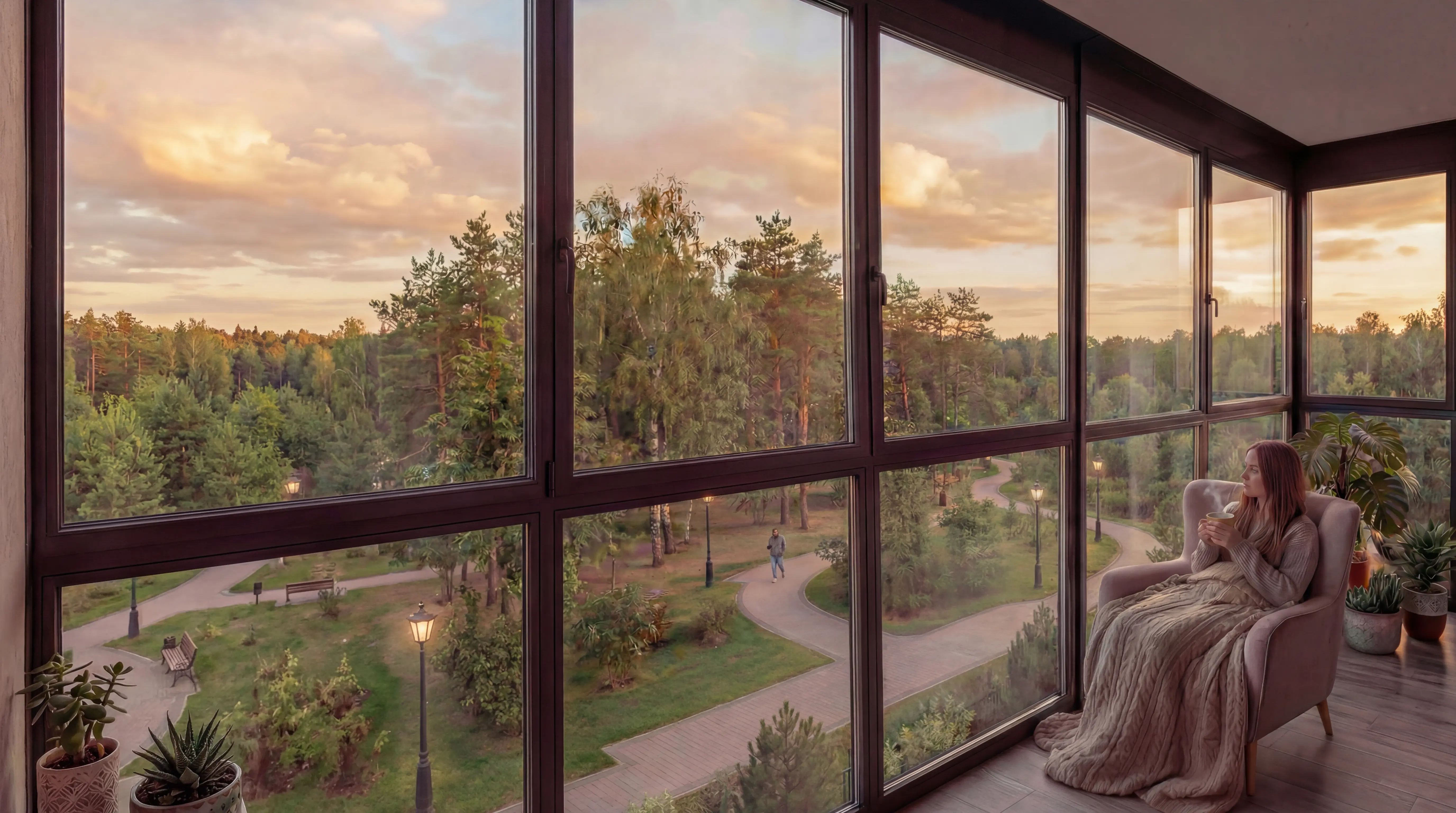 ЗАЧЕМ СМОТРЕТЬ СЕРИАЛЫ, ЕСЛИ ЗА СТЕКЛОМ ЖИВЫЕ СЕЗОНЫ? ОТ ПОЛА ДО ПОТОЛКА – СВЕТ, НЕБО И ПАРК, КОТОРЫЙ МЕНЯЕТ ДЕКОРАЦИИ ЧЕТЫРЕ РАЗА В ГОД.
